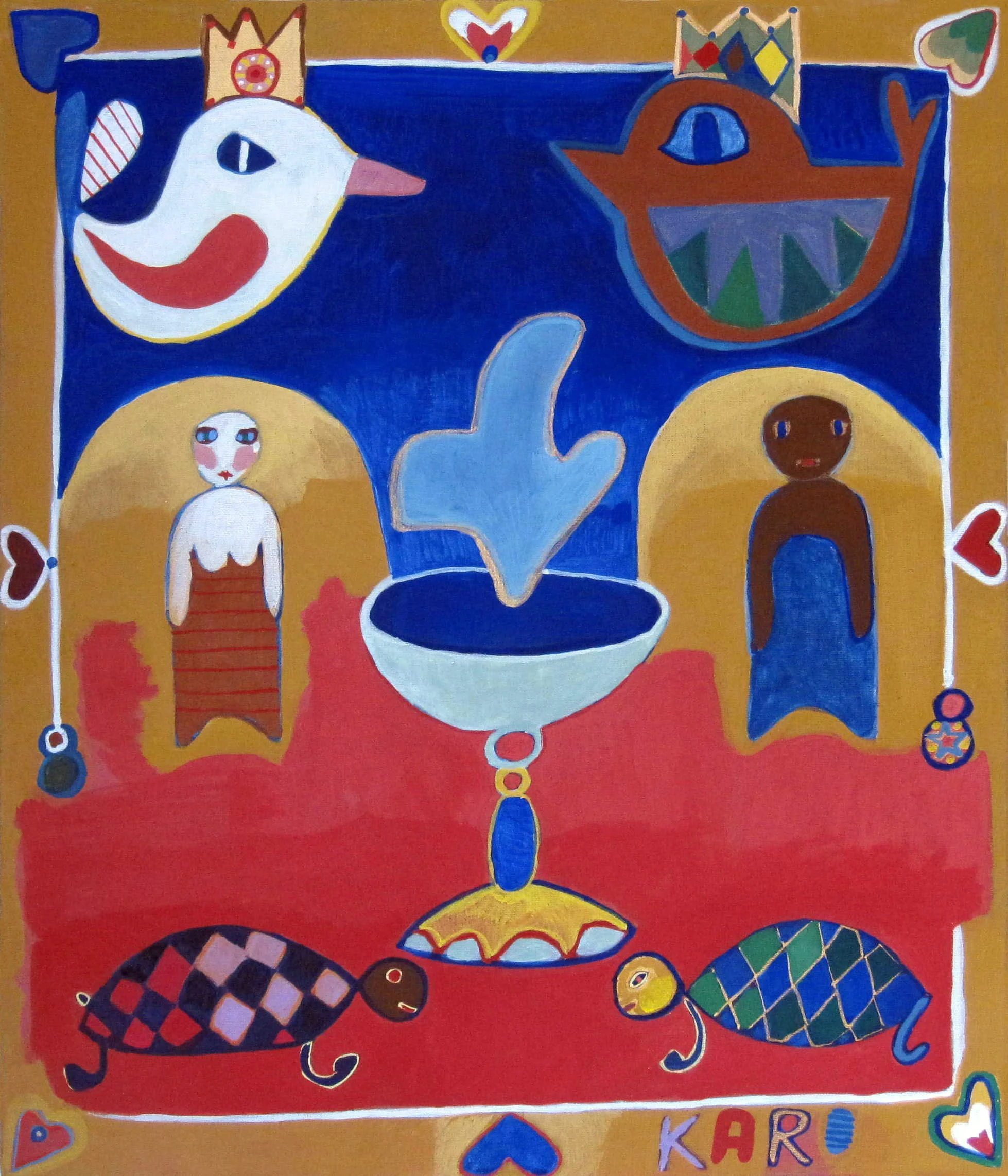 Ten obraz ma w sobie coś z plakatu. Jest trochę wesoly, ale jednoczesnie jest zupełnie serio. Został w Indonezji, a właściwie pojechał do Malezji ze swoją nową właścicielką. W trakcie wernisażu spytała mnie czy to mój ulubiony obraz, gdy potwierdziłam bez wahania go kupiła.